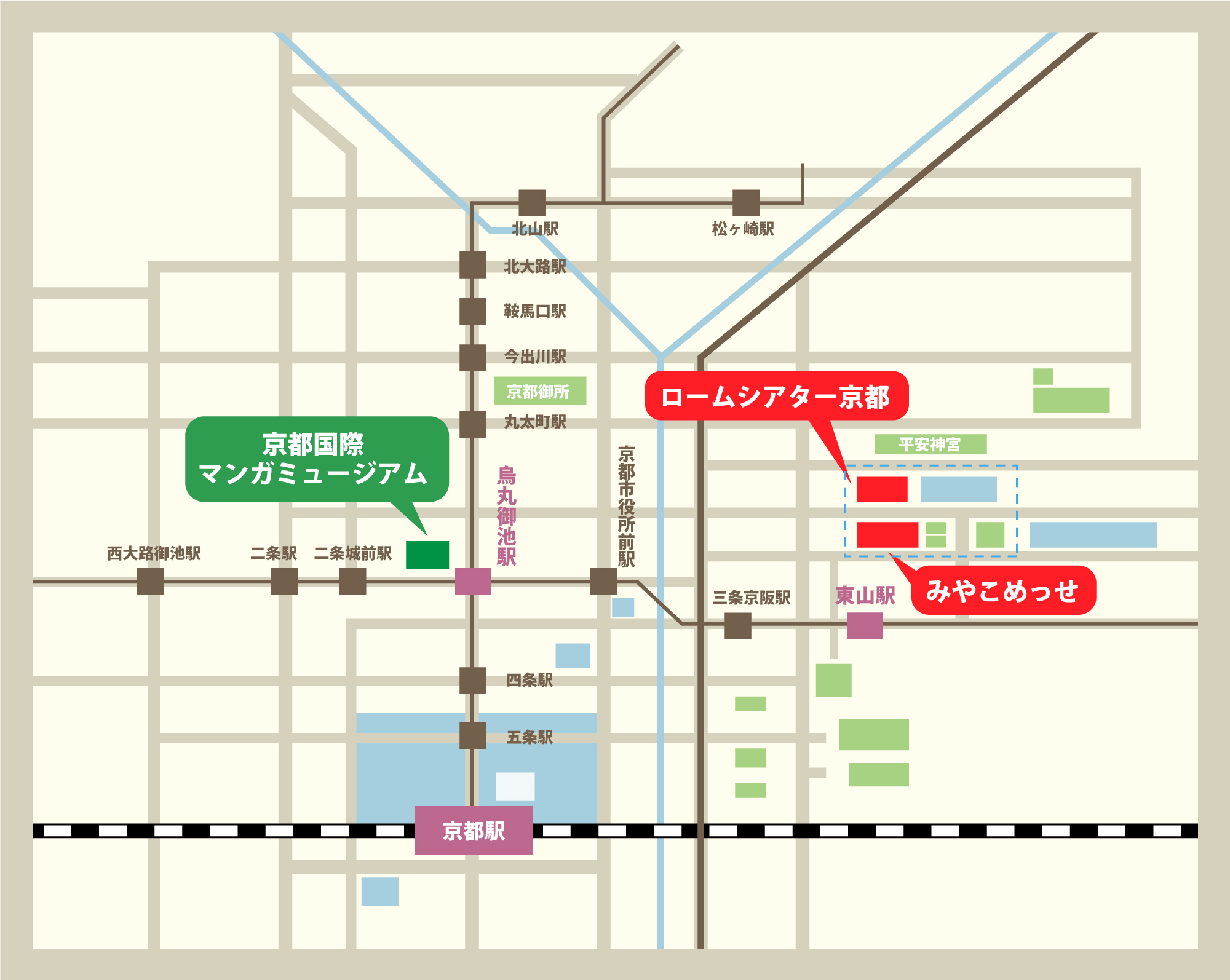 ・「岡崎公園 ロームシアター京都・みやこめっせ前」下車すぐ